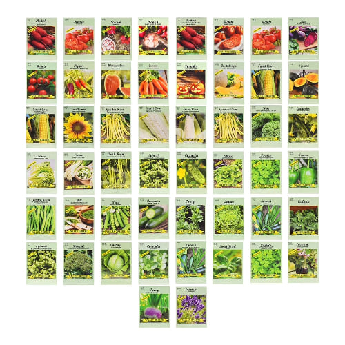A bulk pack offering 50 individual seed packets covering over 30 different vegetable varieties for gardeners looking to diversify widely with the brand’s heirloom, non‑GMO promise.